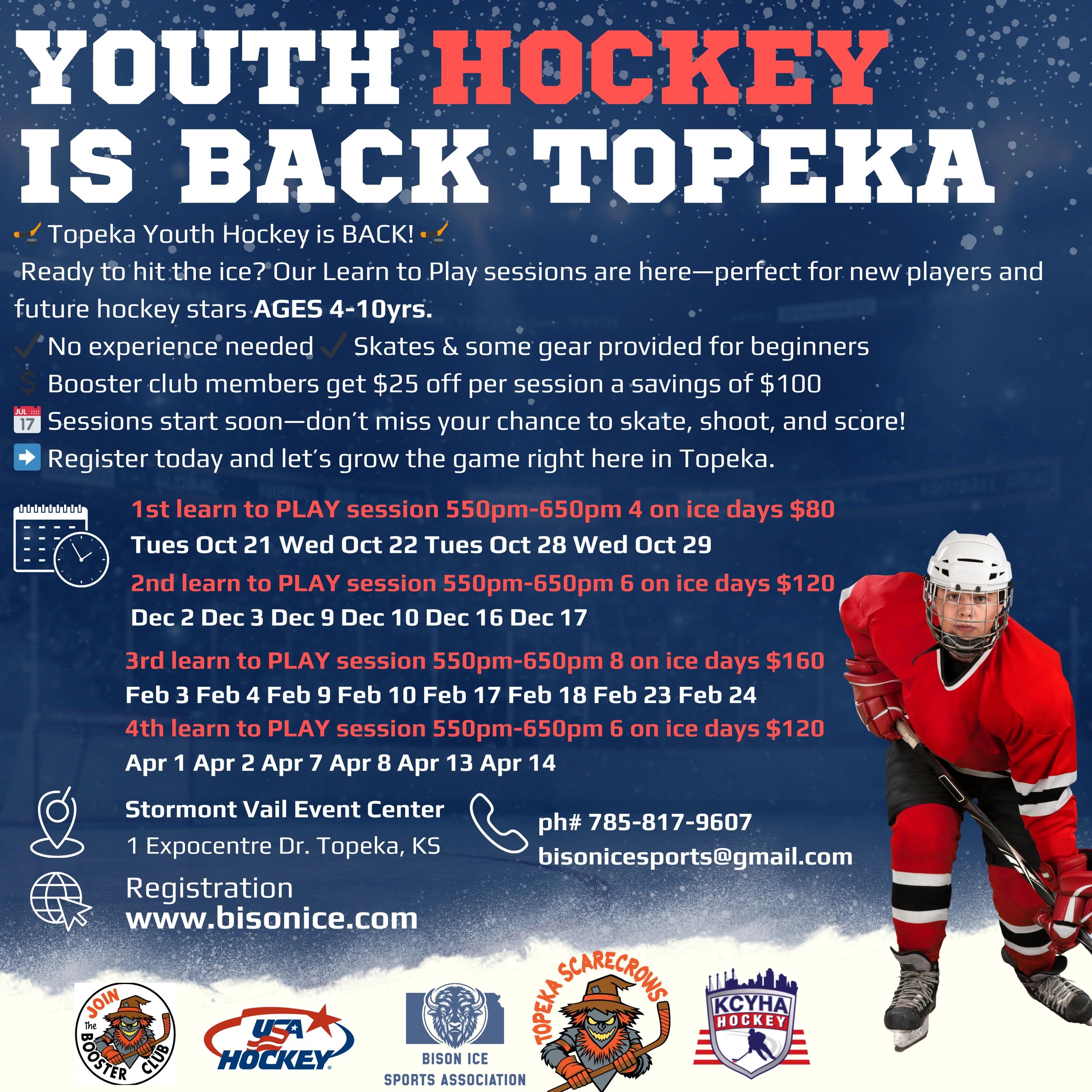 We’re thrilled to announce the return of youth hockey to Topeka for the upcoming season! After years of community passion and planning, young athletes once again have the opportunity to lace up their skates, hit the ice, and be part of something truly special.